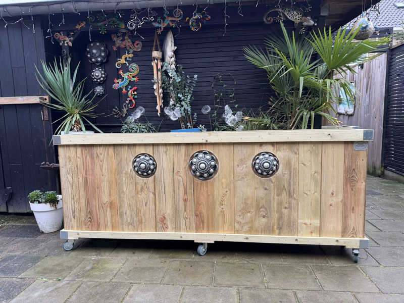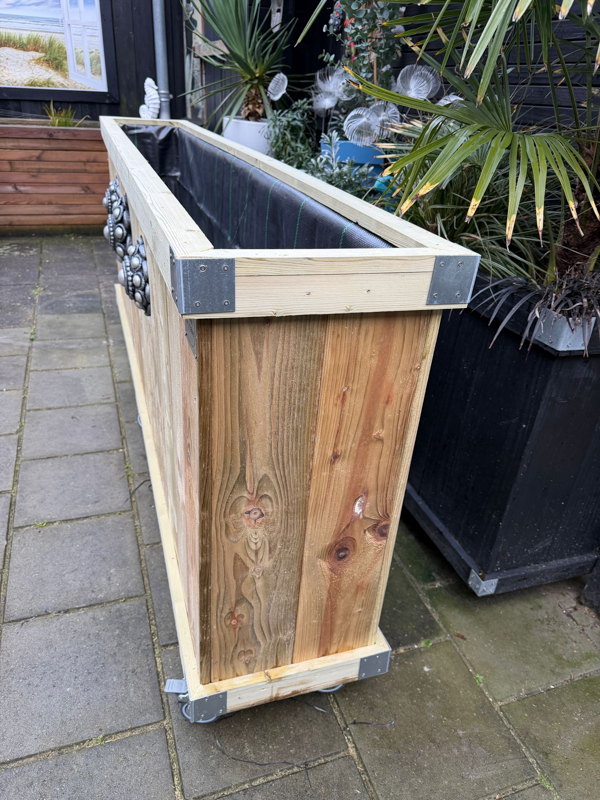 Het hout wat wij gebruiken voor de Zeeuwse bloembakken is bestand tegen elk type weersomstandigheid. Met zorgvuldigheid kiezen wij het hout voor de bloembakken. Door het gebruik van speciaal hout krijgt de bloembak een rustieke maar toch elegante uitstraling. Het is normaal dat de houtkleur na verloop van tijd een beetje vervaagt. De verstevigingshoeken en zwenkwielen zijn functioneel gekozen. Als het gaat om uitzetten en krimpen door vocht in het hout, en gemakkelijke verplaatsing van de bakken naar elke willekeurige gekozen plek.